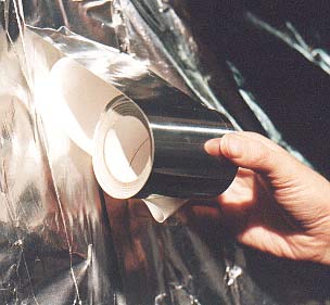 Alle Überlappungen, Anschlußstellen und Risse müssen mit einem Spezialklebeband sorgfältig verklebt werden, um Wärmebrücken zu vermeiden und ein Eindringen von Feuchtigkeit in die Dämmschicht zu verhindern.