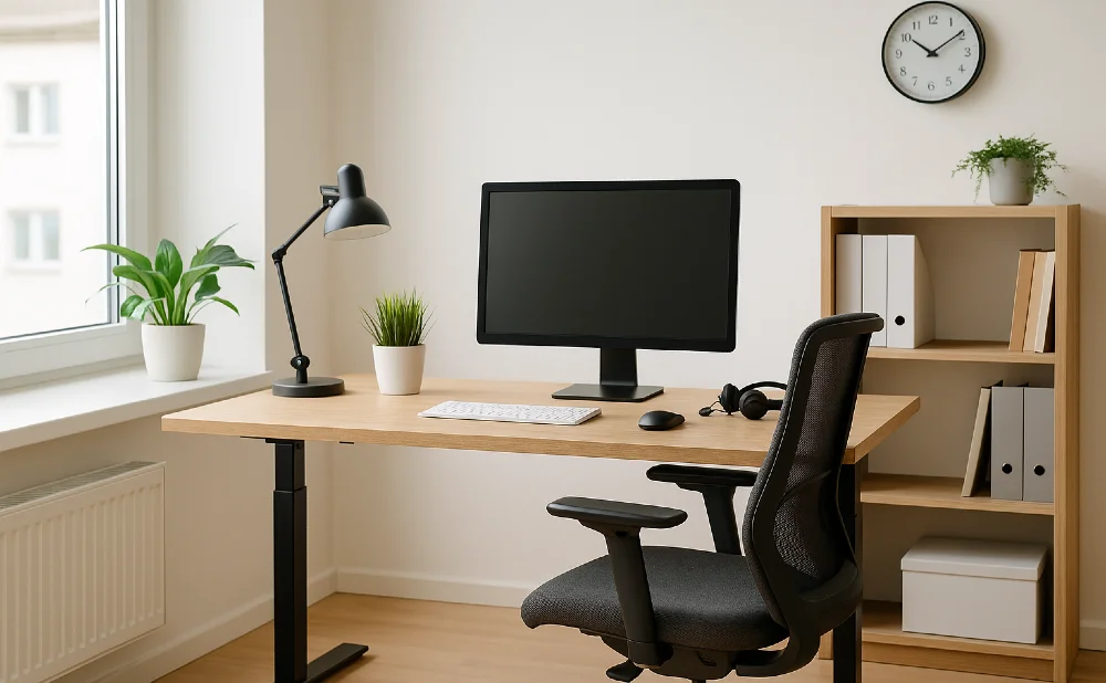 Ein gut strukturierter Arbeitsplatz steigert Konzentration und Wohlbefinden. Eine klare räumliche Abgrenzung hilft, fokussiert zu bleiben und Ablenkungen zu reduzieren. - Ergonomie